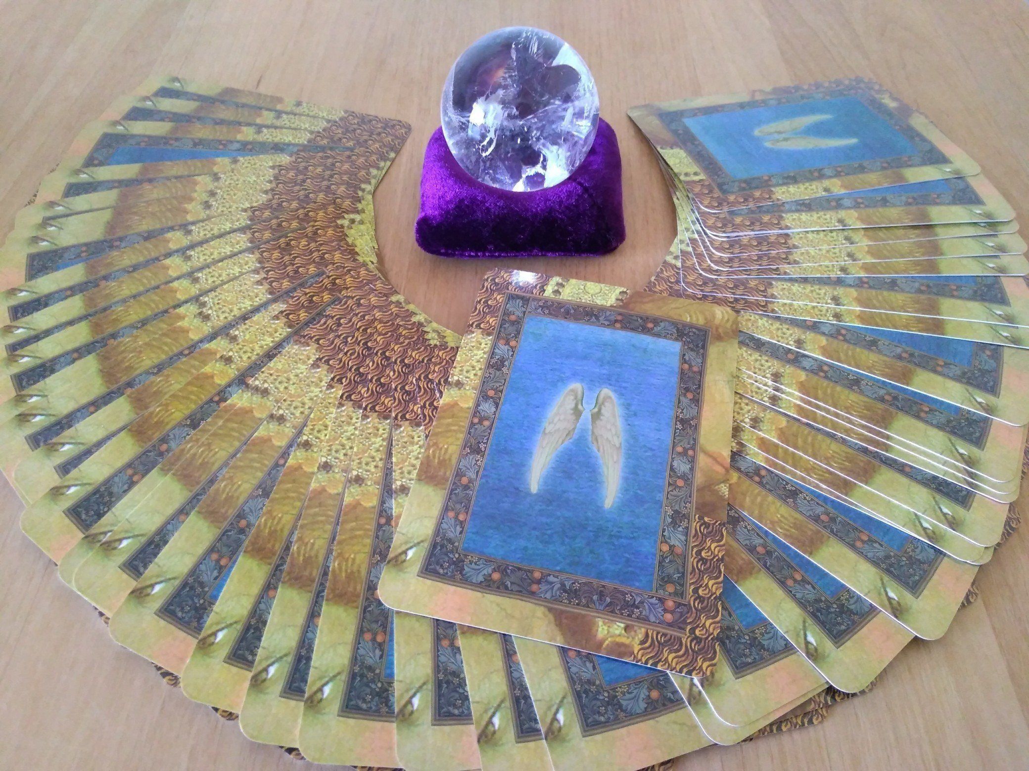 今回使用するのはエンジェルカード。天使からのメッセージが詰まったオラクルカードで、絵柄が美しく、怖がらせたり否定したりするカードがないのが特徴です。