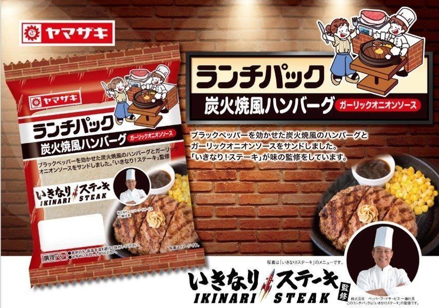 昨年の大ヒット製品『いきなり!ステーキ監修 ランチパック 炭火焼風ハンバーグ』が、さらに美味しくなって新発売!!