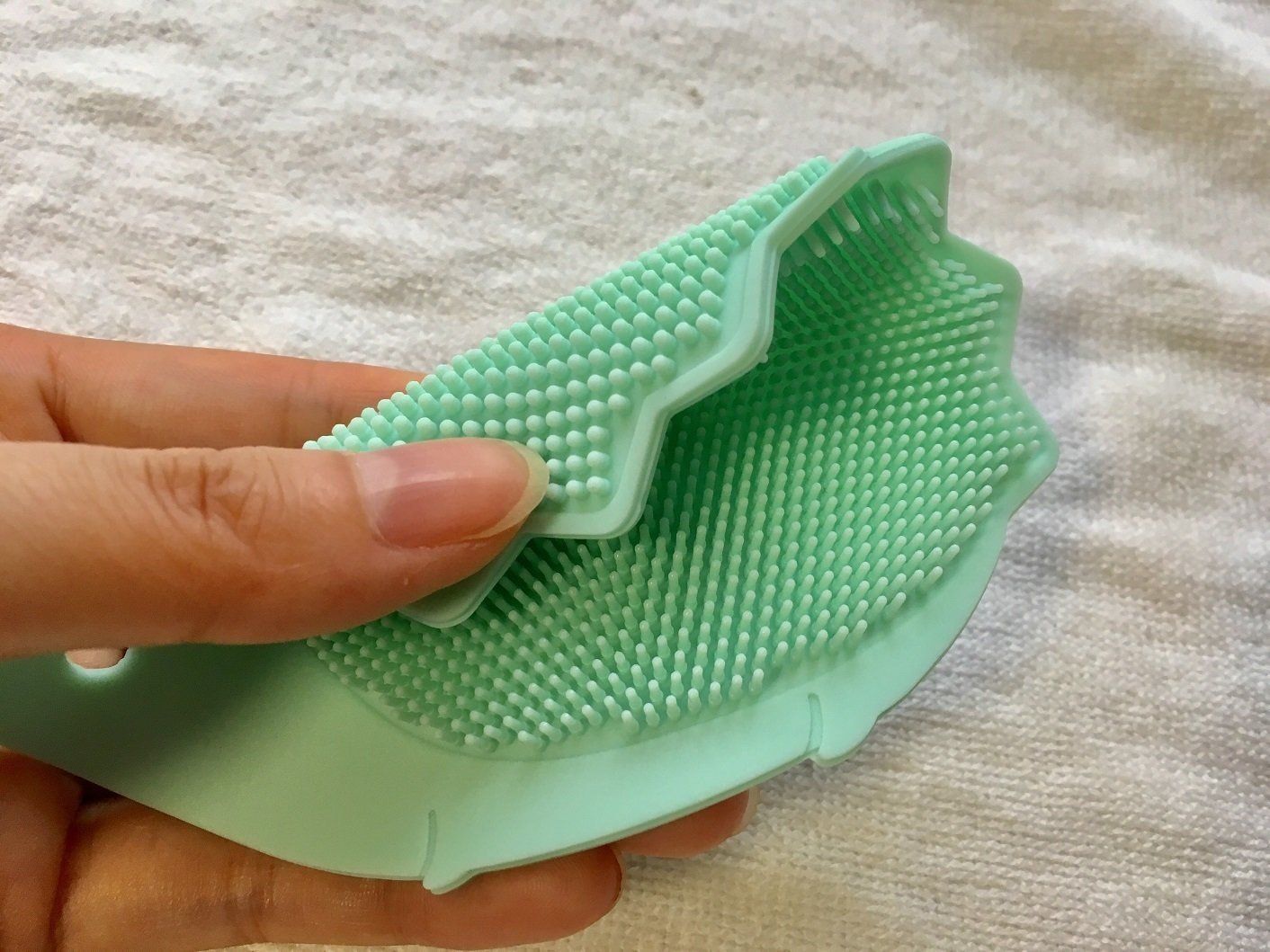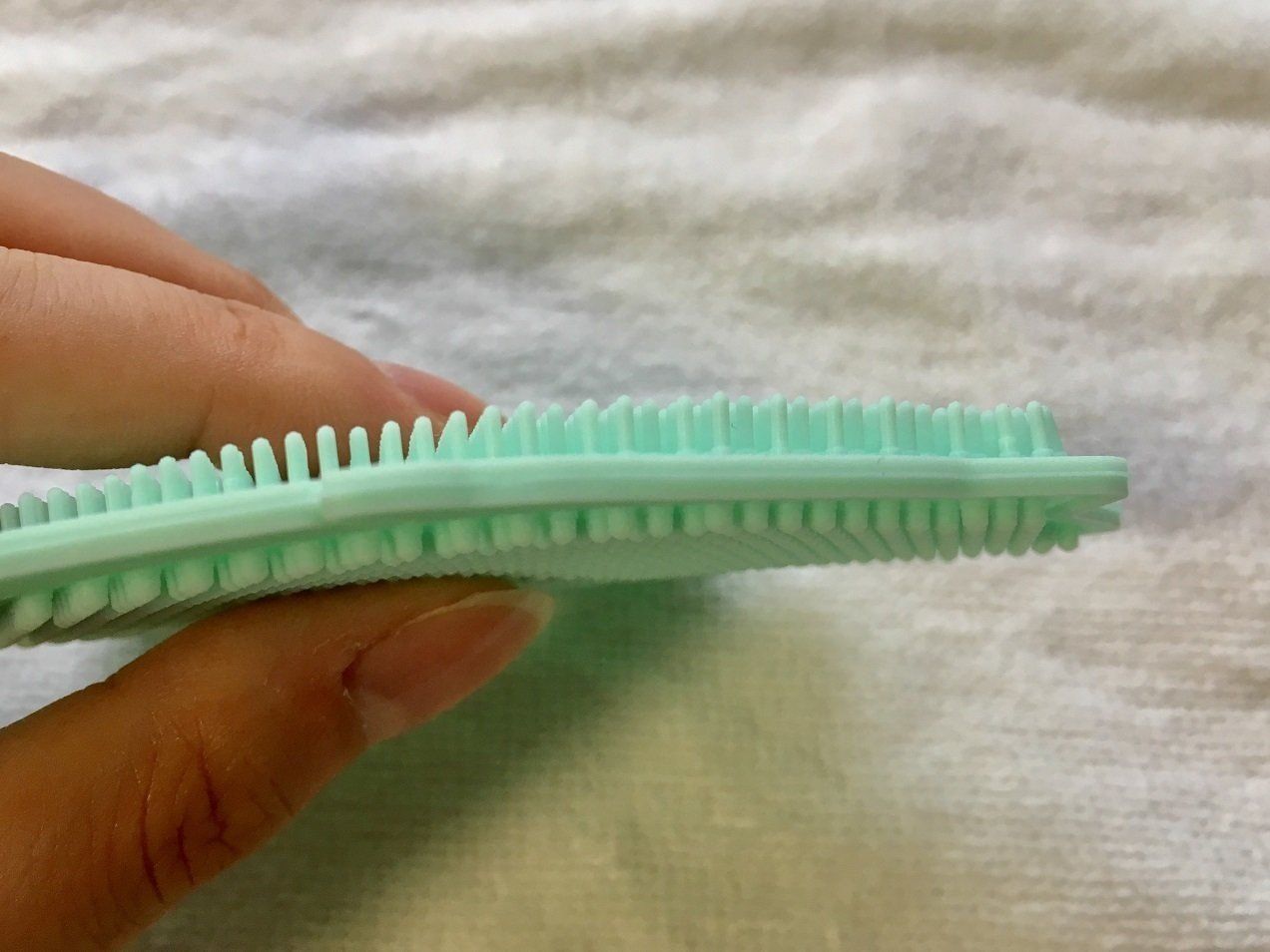 見た目とプニプニ感だけでも満足しちゃいそうですが、あくまでこれはシリコーンキッチンブラシ。その点も、ちゃんと機能的な仕上がりになっています。ブラシは両面についており、それぞれ長さが違うので、状況によって使い分けることが可能。