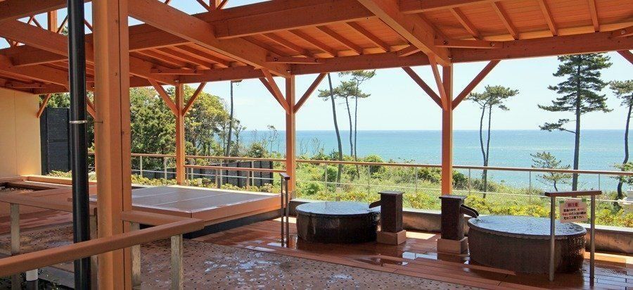 海に面した開放的な眺望が魅力の日帰り温泉施設。温泉は茶色の塩化物泉で芯からよく温まります。近くにコテージや宿泊施設が併設されていて、宿泊者は朝6時から入浴可能。太平洋から昇る朝日を見ることができます。元旦のみ、日帰り利用の方にも朝6時から解放するので、初日の出を見ながら温泉という贅沢な時間を過ごしてみませんか。