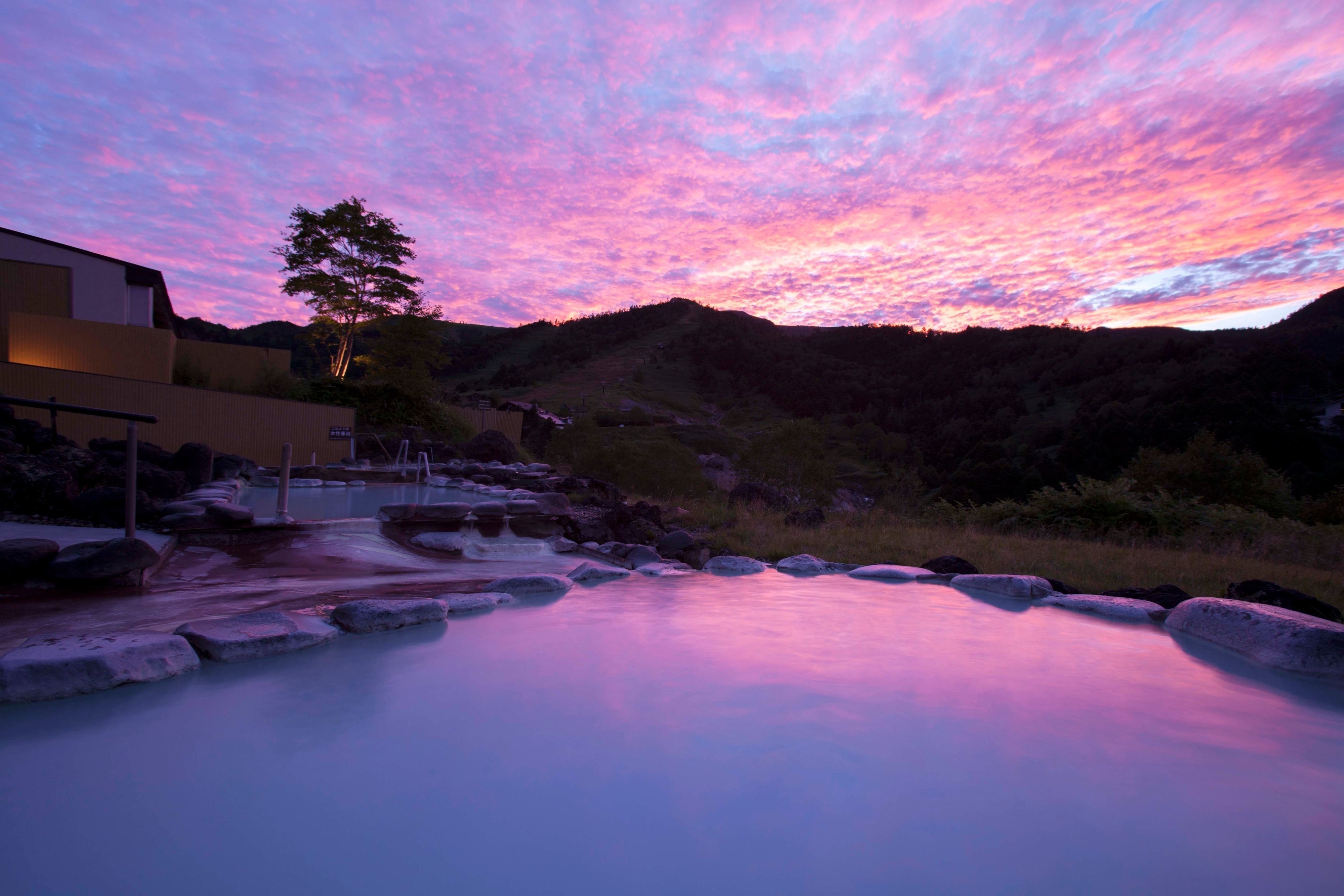 万座温泉の中でもファミリーに人気の万座プリンスホテル。近くに万座温泉スキー場があり、小学生以下はリフト券が無料です。温泉は24時間入浴可能、混浴露天風呂があります。酸性泉、硫黄泉なので、肌の弱い方は長湯に注意してください。温泉は山に囲まれ、少し遅い時間に日の出を迎えます。3階宴会場で初日の出観賞時間にふるまいを予定。