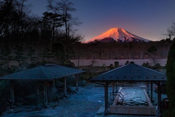 冬の朝、富士山が朝日を受けて真っ赤に染まる現象「紅富士」から名前をつけた日帰り温泉施設。山中湖の近くにあり富士山を眺めながら入浴できるので人気があります。冬季の土日と正月3が日に冠雪が赤く染まる「紅富士」を楽しむ朝風呂を開催。日の出自体は見えませんが、紅富士を堪能することができますよ。
