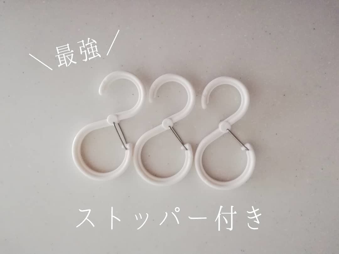 ストッパーつきS字フックは、かけているものを取っても落ちてしまう…というストレスをなくしてくれます。白黒2色展開で、サイズ違いも販売されているため要チェックです。