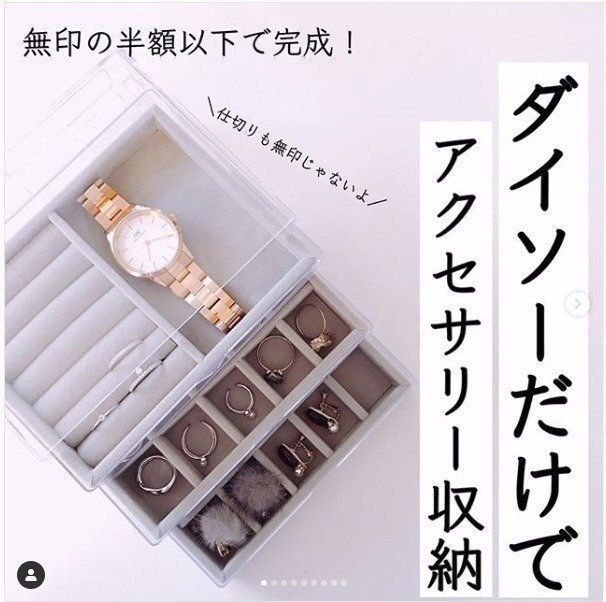 ダイソーのアクセサリーケースは、自分の持っているアクセサリーの量に合わせて仕切りケースが選べる優れもの!無印良品の商品に負けず劣らずの人気商品です。