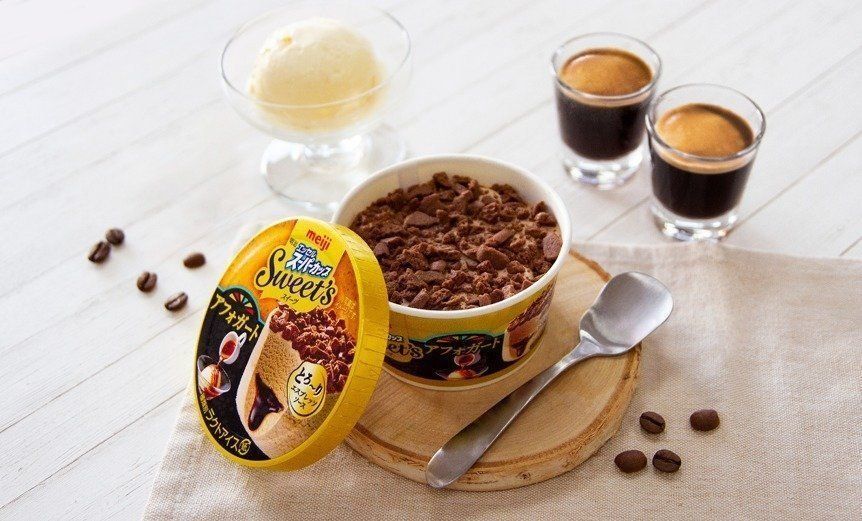 ちょっとリッチな気分になれる「明治 エッセル スーパーカップSweet‘s」シリーズから新商品「アフォガート」が登場。ひんやりアイスに濃厚なエスプレッソなどの飲み物をかける“アフォガート”のおいしさが楽しめるようになったそう。