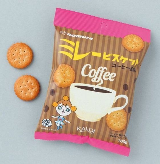 素朴な風味で人気のミレービスケットがほんのり甘いコーヒー味に。ほかの商品でも、カルディ限定味が出ていることがあるので、お店の商品札をお見逃しなく。