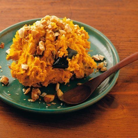 冷凍かぼちゃをレンチンしてつぶし、「クリームチーズ」、塩、砕いたナッツをミックス。甘じょっぱさとこくがやみつきになる、カフェ風つまみが完成。