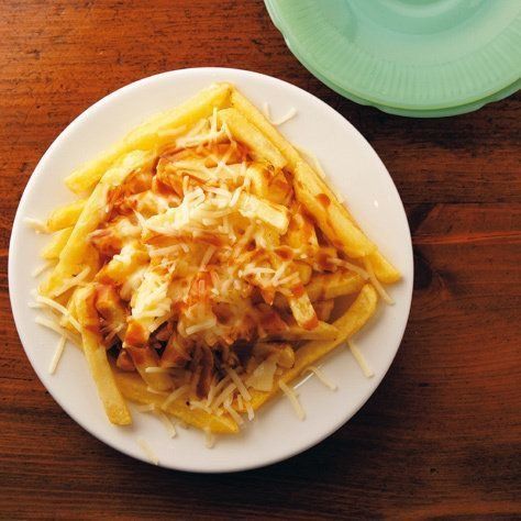 カナダの郷土料理のお手軽版。揚げた「フライドポテト」に、ステーキソースまたはケチャップ+中濃ソースを同量混ぜた物、溶けるチーズをのせてでき上がり。