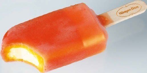 マンゴーアイスクリームをマンゴー果肉とオレンジ果汁の2つでコーティング。酸味×甘み×フルーティーさが絶妙!(※期間限定 ¥295/ハーゲンダッツ)
