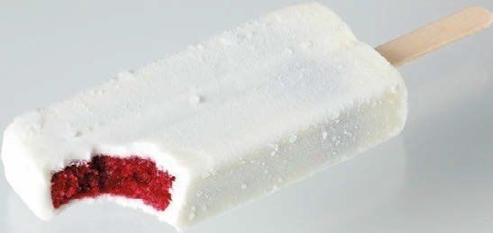 ヘルシー志向のスムージー派にはたまらないアイスバー。ラズベリーやカシスなどの果汁やブルーベリーの果肉をふんだんに使用。(¥160/森永乳業)