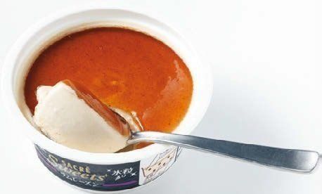 トップにはラム風味のレーズンソースが。濃厚でクリーミーなアイスを食べ進めると、時折出合う氷の粒やレーズンがたまらない!(¥160/フタバ食品)