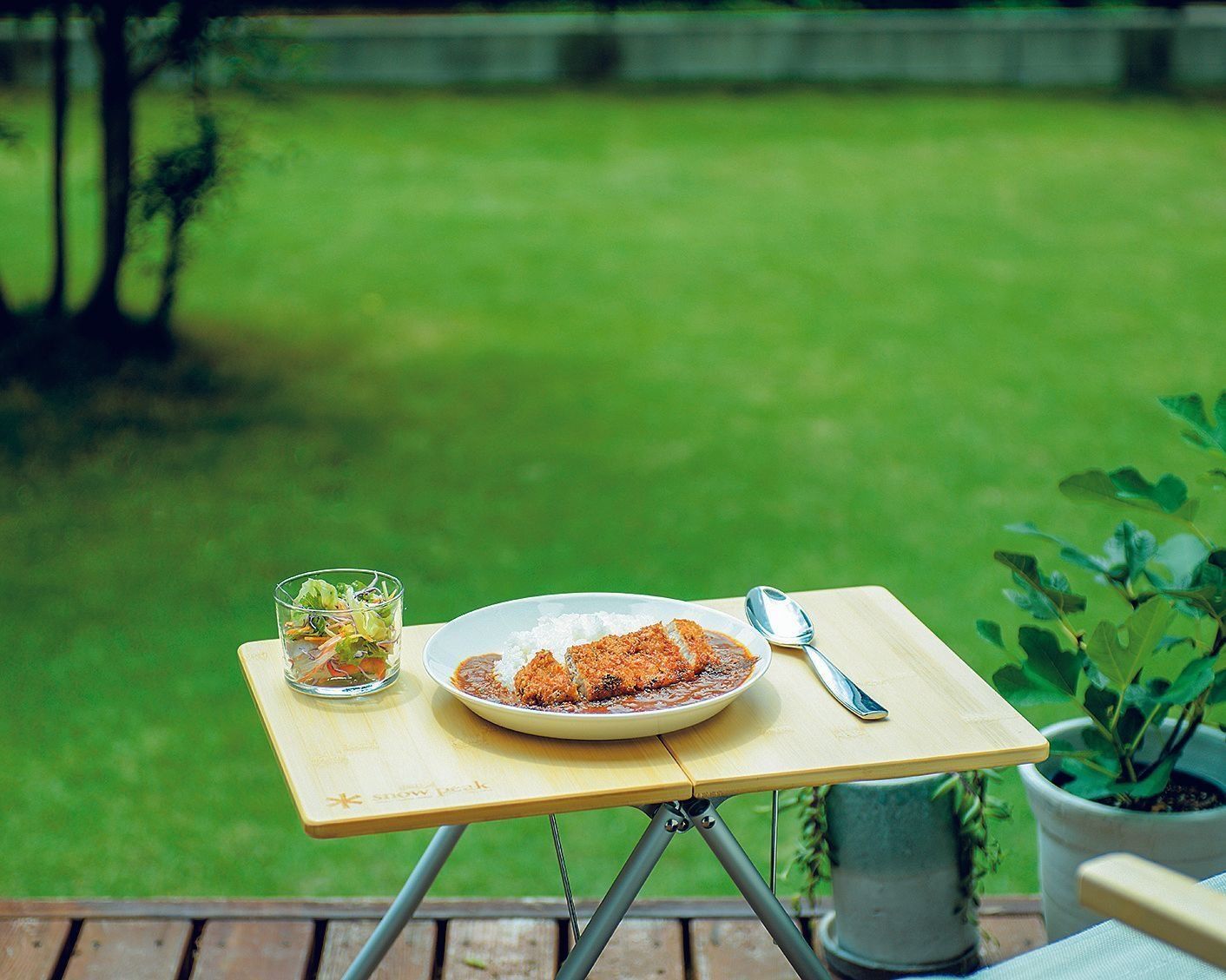 夫のつくってくれるカレーを庭で食べればさらにごちそうです。コーヒーやおやつも時々庭で。お出かけしなくてもハッピーに