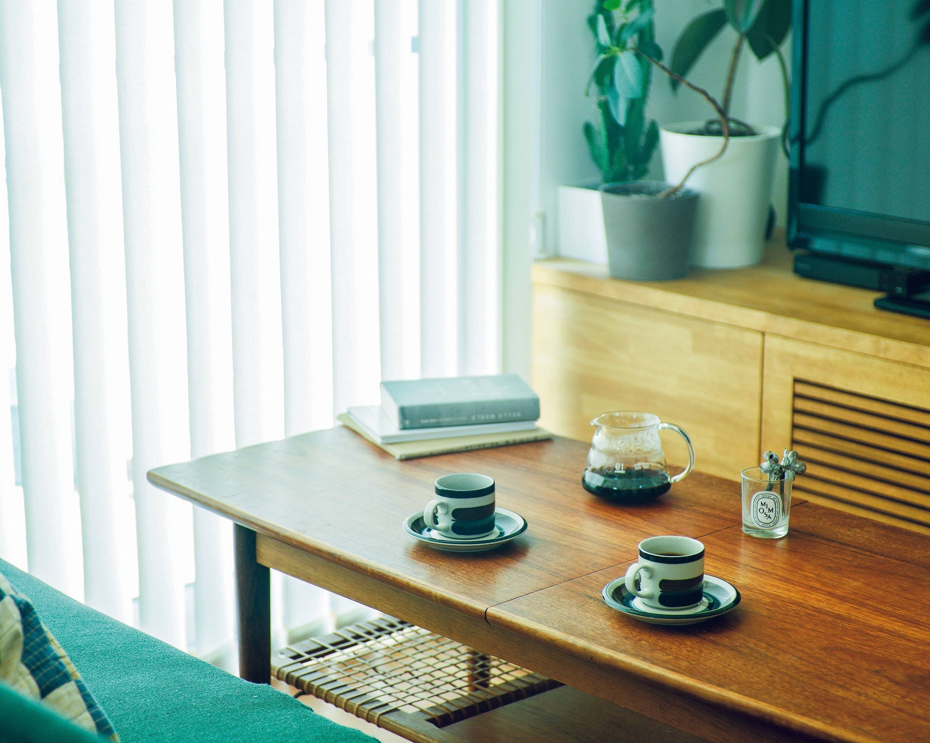 豆をひくところから始まる、夫のコーヒー。好みの豆は取り寄せることも。日常のものをていねいに選ぶことも日々を楽しくするコツ