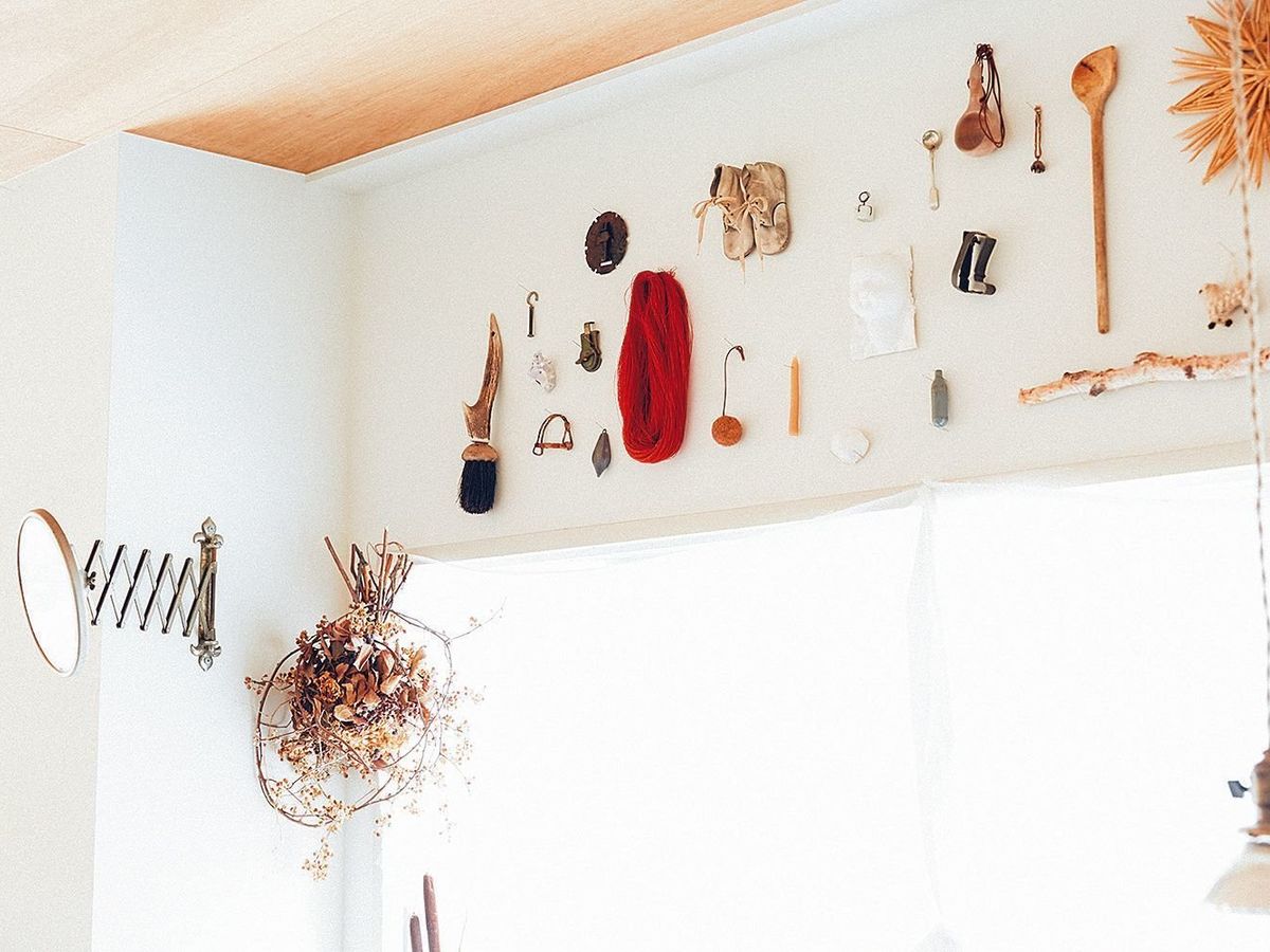 でも、お宅にお邪魔して、壁に飾られたり、棚に置かれたりしている“元ごみ”を見れば、納得。味わいやカタチがそれぞれに美しく、どれも、アートのように見えてくるものばかりなのです。名もないものたちが、千恵さんの家に集まると、暮らしの一部を彩るものになってくるさま、なんとも不思議です。