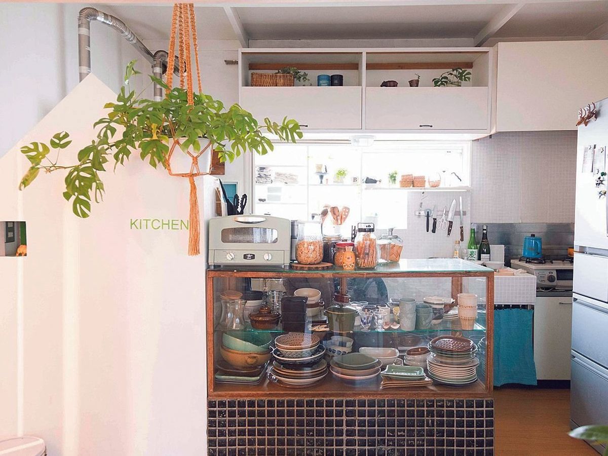 まずは、家づくり。2〜3年でまた引っ越すことはほぼ確実だけど、大がかりなDIYを決行。畳をはずしてフローリングを敷いたり、キッチンにタイルを貼ったり。あっという間にカフェのような空間をつくり出してしまいました。「すぐ引っ越すのにどうして?」と聞かれることもあるそうですが、「転勤があるからとやらずにいたら、夫の定年まで、いろいろなことをずっとあきらめる人生になってしまう。インテリアが好きだから、やっているだけです」。以前の住まいも雑誌の取材を何度も受けるほどのクオリティーにつくり上げていたけれど、引っ越してまたすべて一からやり直し。でも「もう一回楽しめる」と、あえてまた古い家を選びました。
