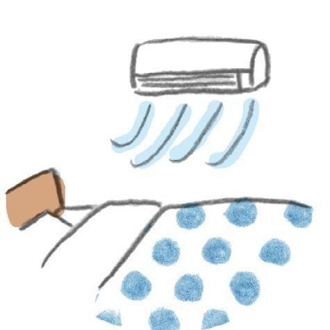 あらかじめ寝室のエアコンを入れ、ふとんをめくった状態で25~26℃に設定して冷やしておくと、ひんやり気持ちよく眠りにつけます。寝るときは27℃に設定し、熱帯夜など寝苦しい日は朝までつけっ放しに。