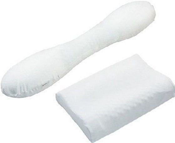 梶本さんが共同開発した、高反発素材の横向き用の枕と抱き枕のセット。「ラテックスメディカルピロー4点セット」(高反発横向き枕、抱き枕、枕カバー、抱き枕カバー M〈170㎝未満用〉)¥18,800(税・送料別)/東京疲労・睡眠クリニック ☎03・3504・0555