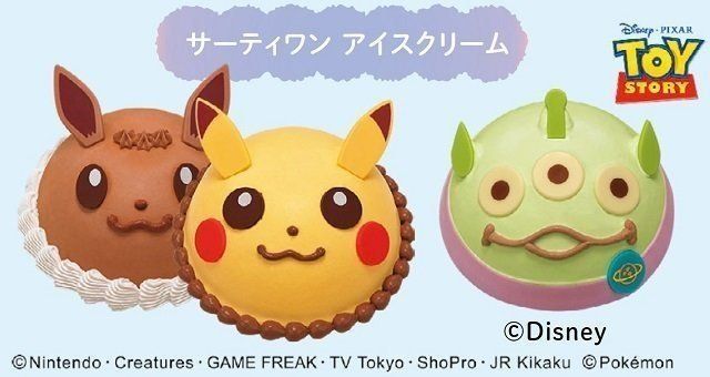 ▲左から「ポケモン アイスクリームケーキ ピカチュウ」、「ポケモンアイスクリームケーキ イーブイ」、「トイ・ストーリー」〝エイリアン〞各¥3,300