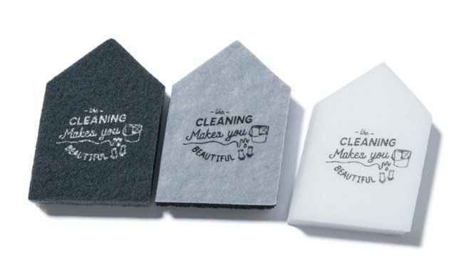 用途によって使い分けができる、モノトーンのスポンジ3種類が1セットに。自立するので立てて保管も可能。