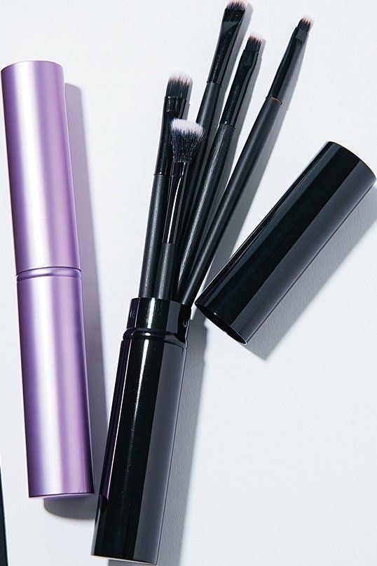 チーク、シャドウ、リップなどの5本のブラシはどれも、コシがあって使いやすい。毛先を保護するケースつき。
