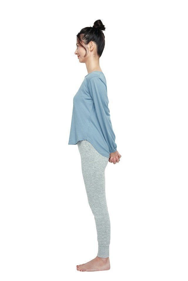 *両手は痛くない程度にひっくり返して、後ろに伸ばします。肩が開いて左右の肩甲骨が中央に寄るのを意識してください。