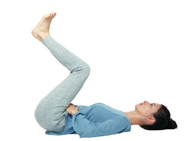 ゆっくり口から息を吐きながら、ひざを90度に曲げて両足を上げ、おへそのあたりにひざが来たら足を下ろします。これをゆっくりと1日20~30回行って。