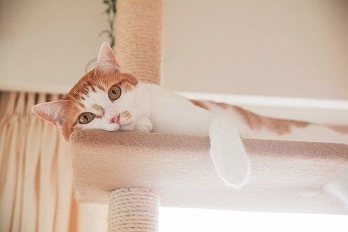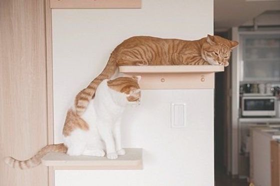 明るく開放的なリビングに、猫のためのタワーやステップと、息子さんの遊び場が共存している大塚さんのおうち。「私たちは結婚が遅かったので、夫婦2人だけの暮らしも視野に入れ、生活が落ち着いたら猫を飼いたいと思っていました」