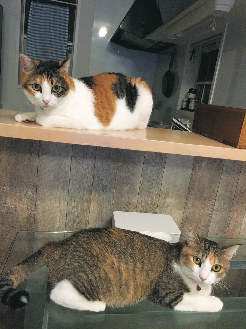カウンターに猫ベッドを置いたり、猫が寝られるように棚に物を置かないようにしています。