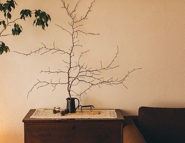 拾ってきた枝をセンスよく飾って模様替え