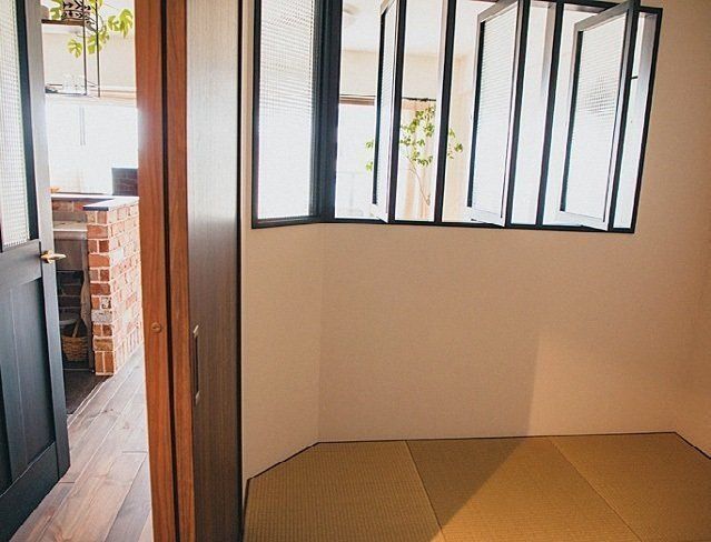 「リフォームに際しては、息子たちがいずれ新しい家族を連れてきてもフレキシブルに使える和室をつくりました」とJUNさん。和室のはめ込み窓を開ければリビングとのつながりも感じられ、風通しがよくて明るく開放的。