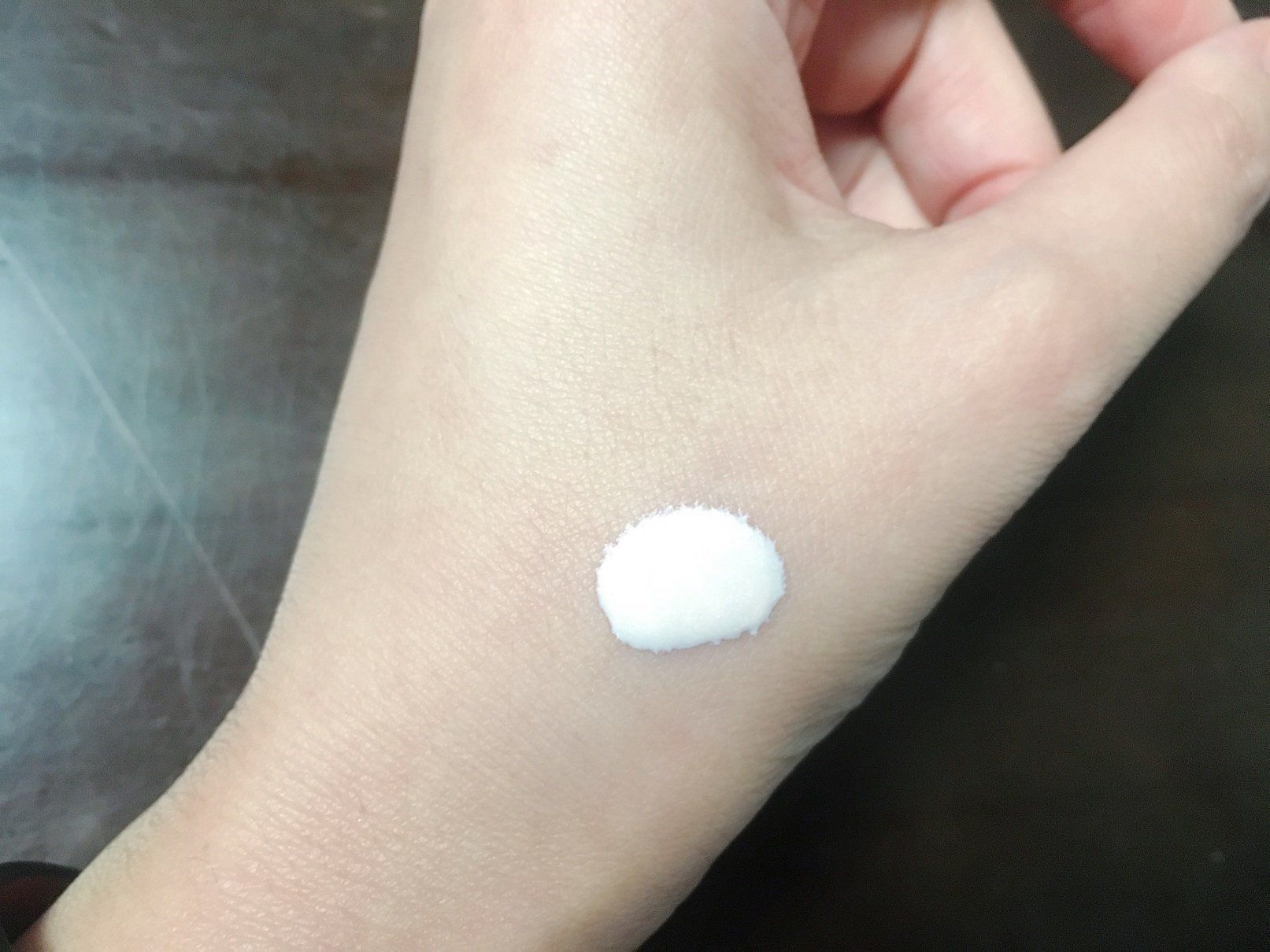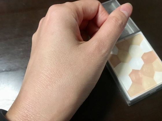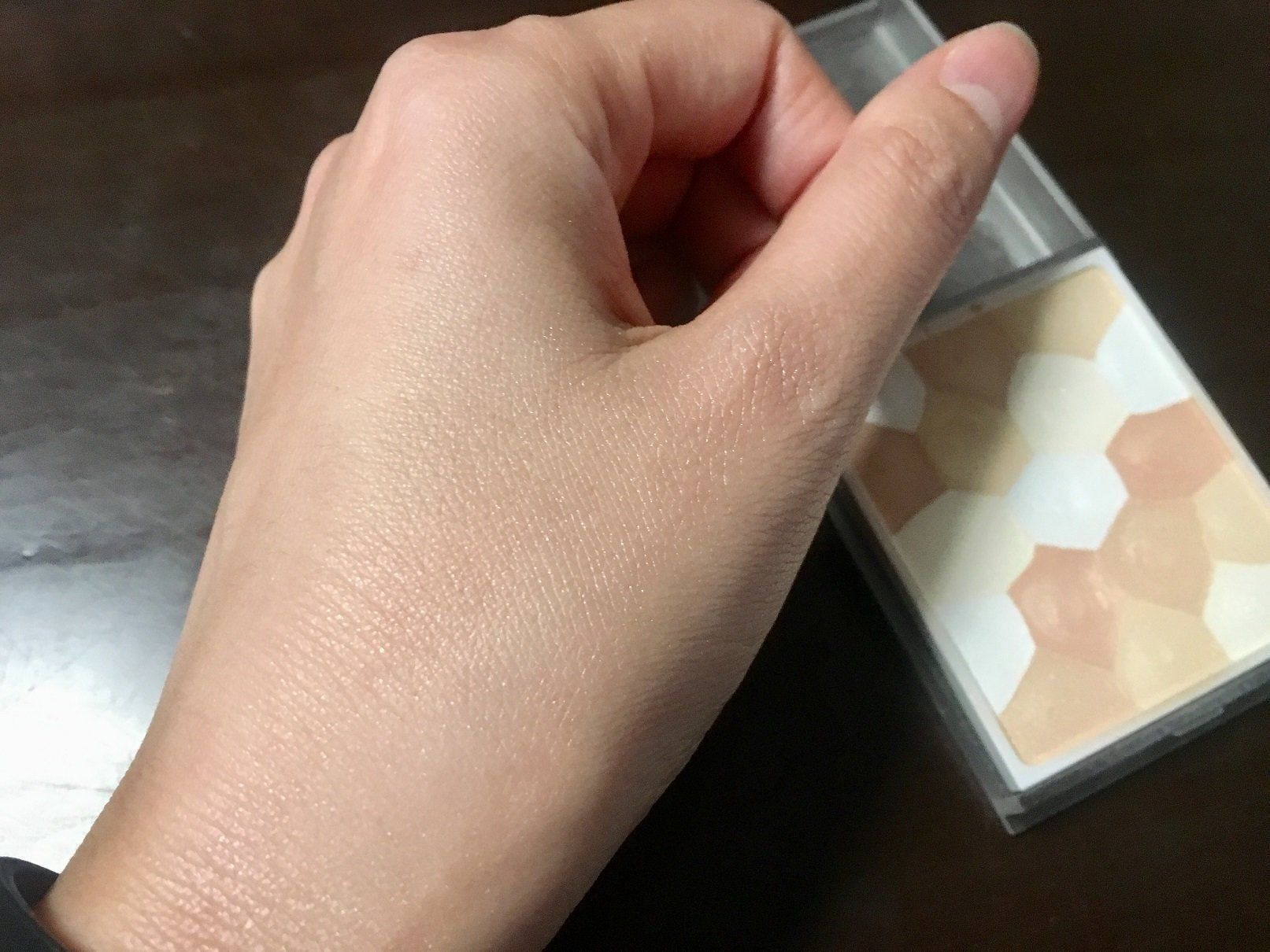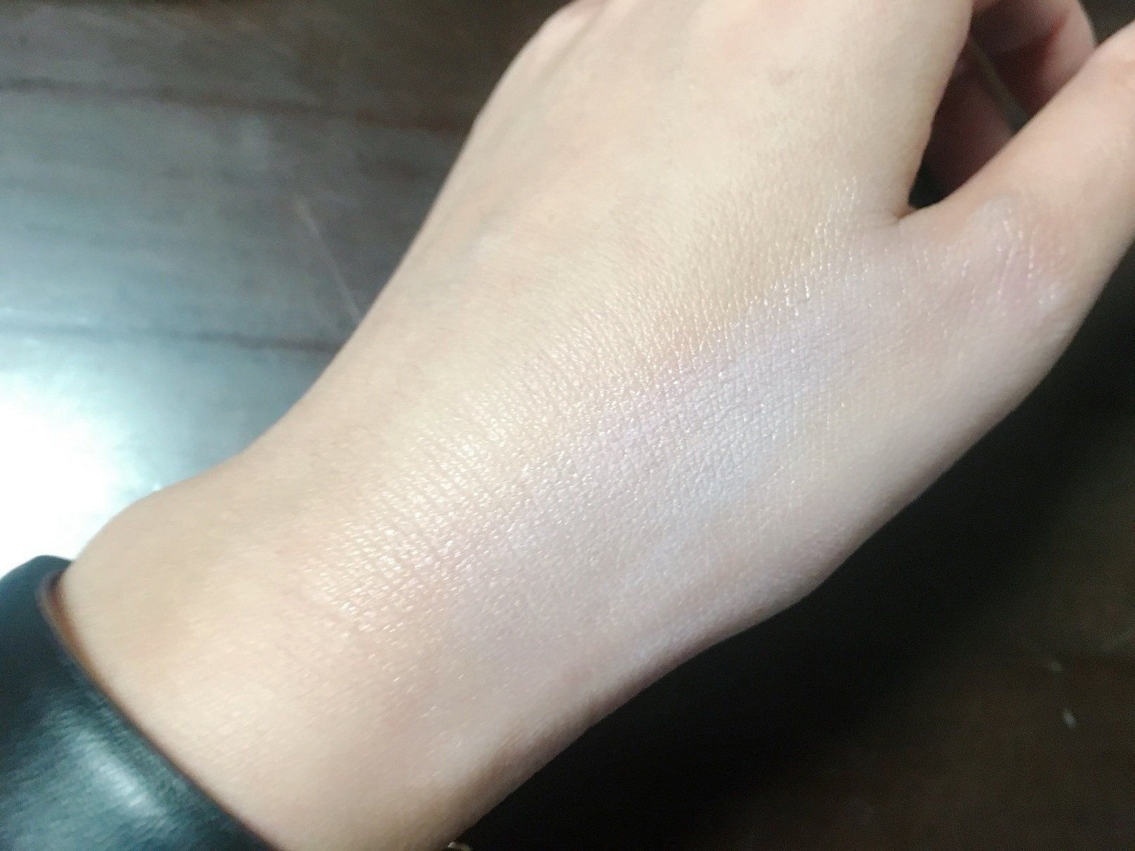 手の甲に少しだけ塗ってみました。のびもよくて、全体的にトーンアップした印象。下地をこちらのみにしてもいいですが、肌の悩みに合わせてほかに4色あるカラー(ピンク、イエロー、ブルー、パープル)と合わせる使用方法もあり。リキッドファンデーションと合わせるのもありな、万能アイテムといえるでしょう。