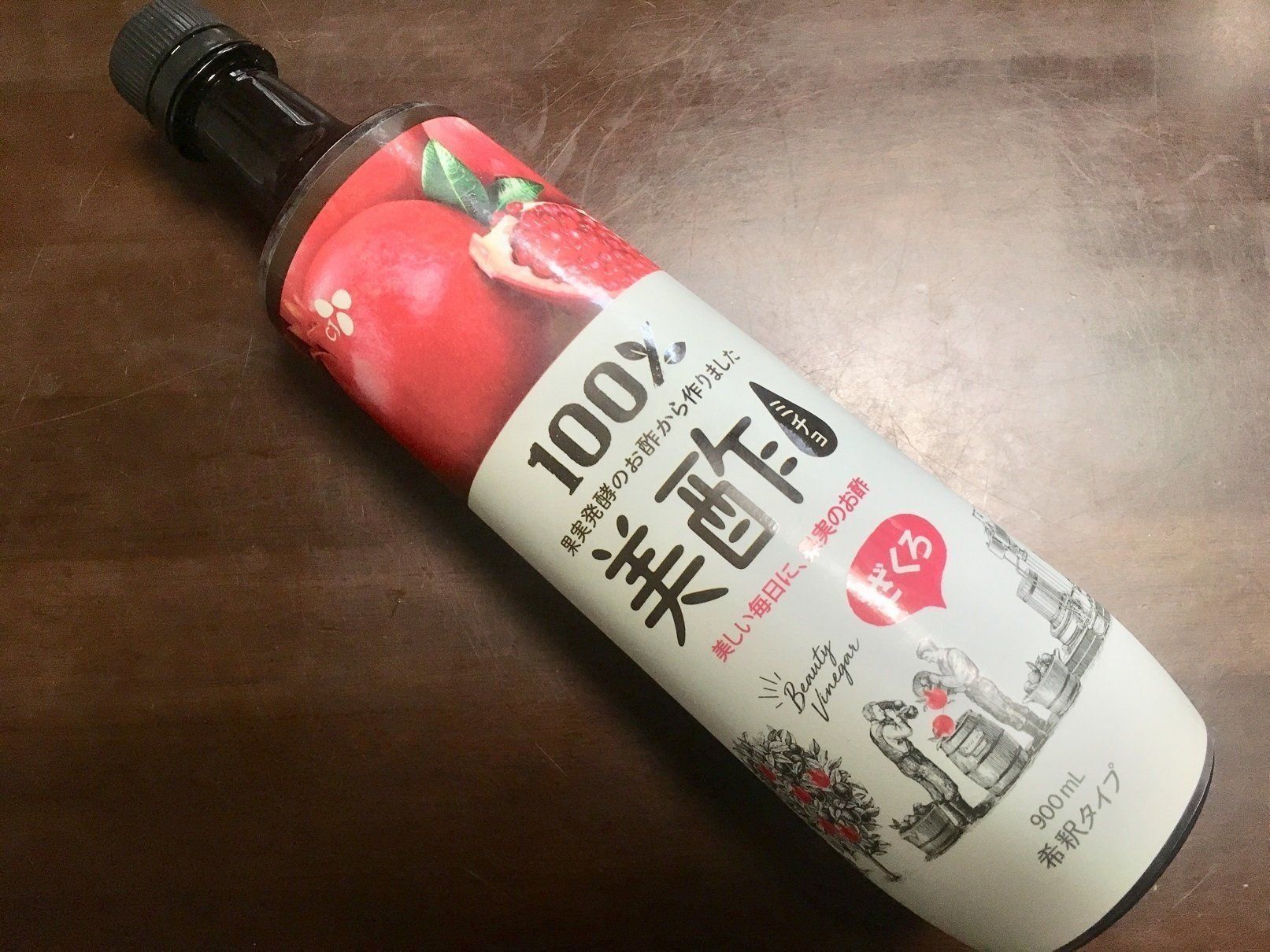 今回紹介するのは、コストコではすでに定番商品化している、飲むお酢の「美酢〈ミチョ〉」。味の種類も複数あり、またパイナップルやマスカットなど中身によってパッケージのカラーも変わって、ボトルもかわいいです。今回はざくろ味をチョイス。