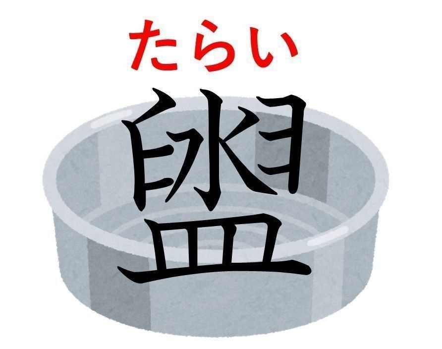 今回の漢字は、なんとも不思議な形ですね。「水」の字の両側に羽のようなものがあって、その下に「皿」。一体なんだか、想像つきますか?