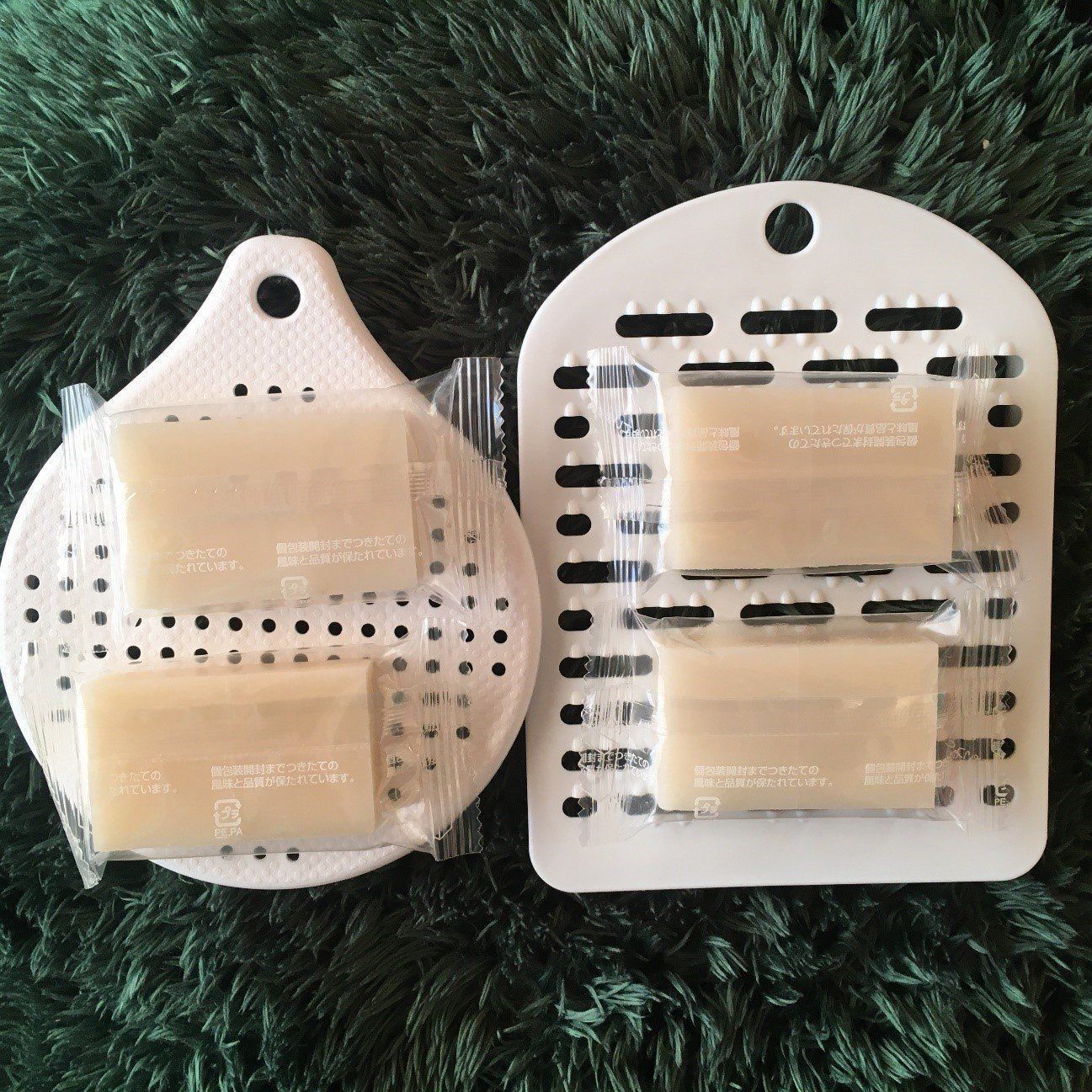 今回ご紹介するのは、ダイソーで販売されている「おもちトレー」。2種類のトレーが販売されていたので、両方購入しました。価格はどちらも100円です。「丸いタイプ」と「四角いタイプ」という形状の違いだけでなく、四角いほうはサイズが少し大きめ。丸いタイプがおもち2つに対して、四角いほうは4つ乗りました。