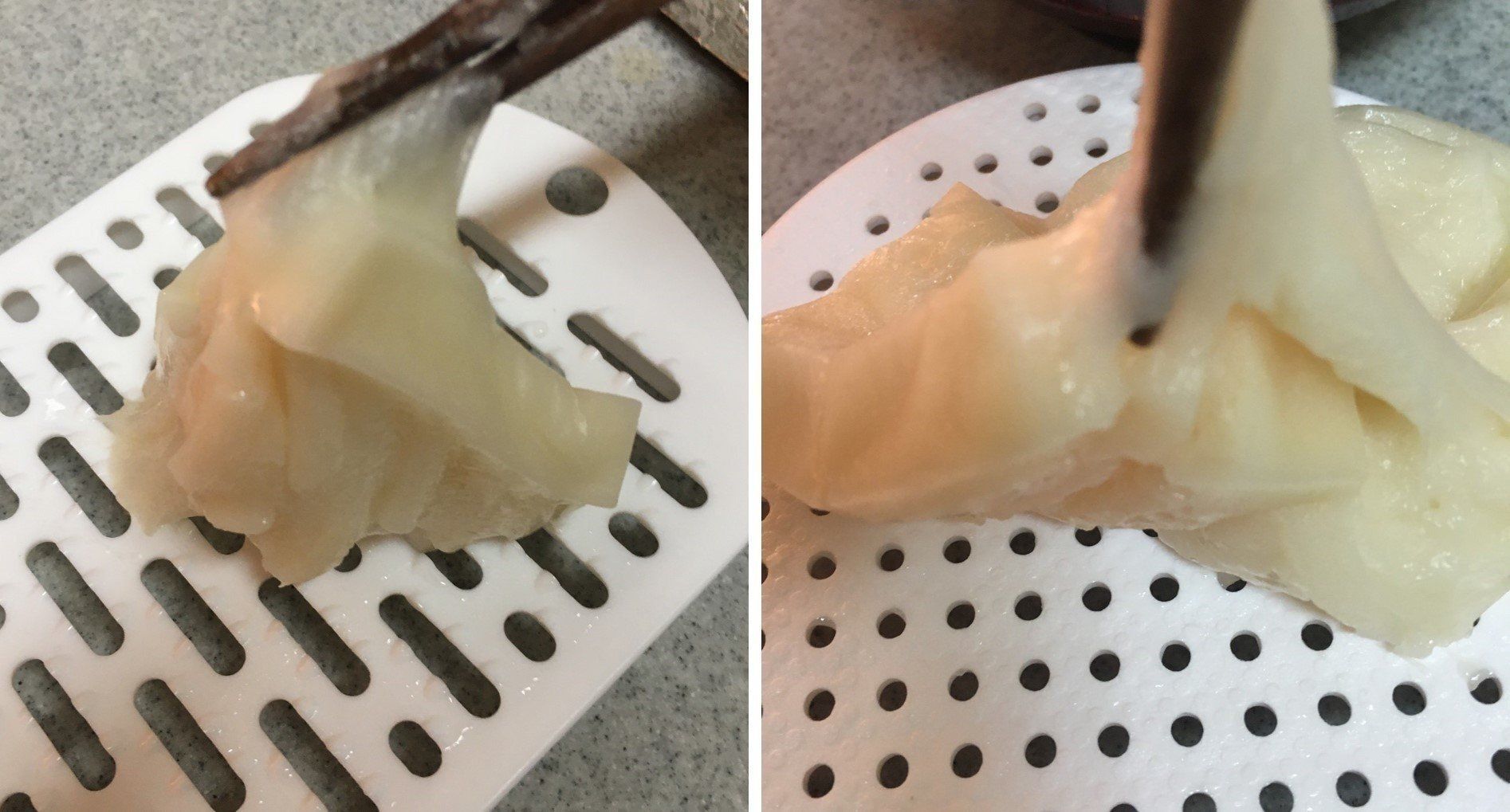 特別に力を入れることなく、箸で簡単におもちがとれました。今まで、おもちを煮たり焼いたり、鍋をつかっても網で焼いても、おもちがくっついて困っていましたが、これなら、めんどうな洗いものが楽々ですよね。