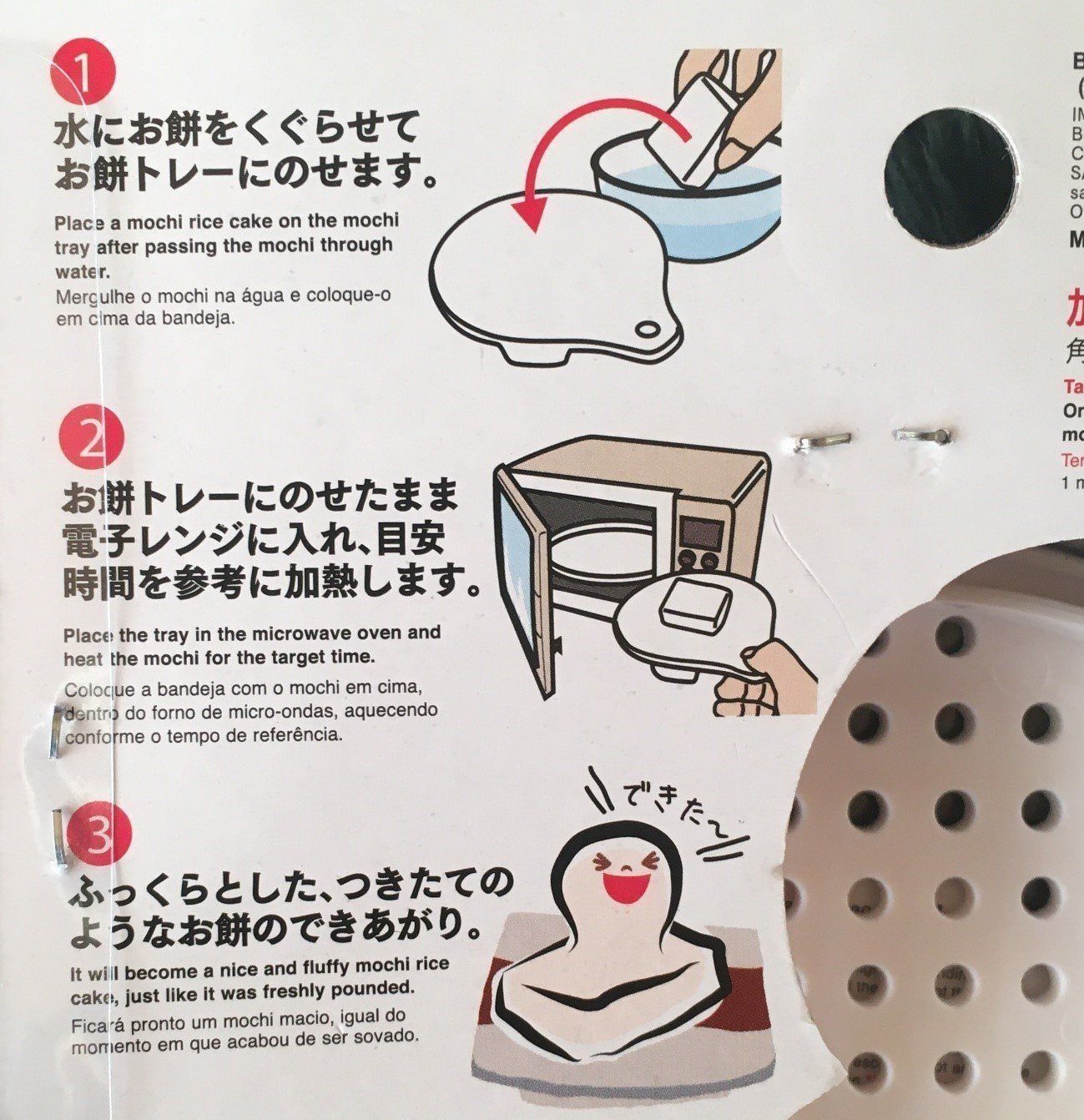 ふっくらとした、つきたてのようなおもちをつくる方法は、パッケージの裏面に説明が書いています。