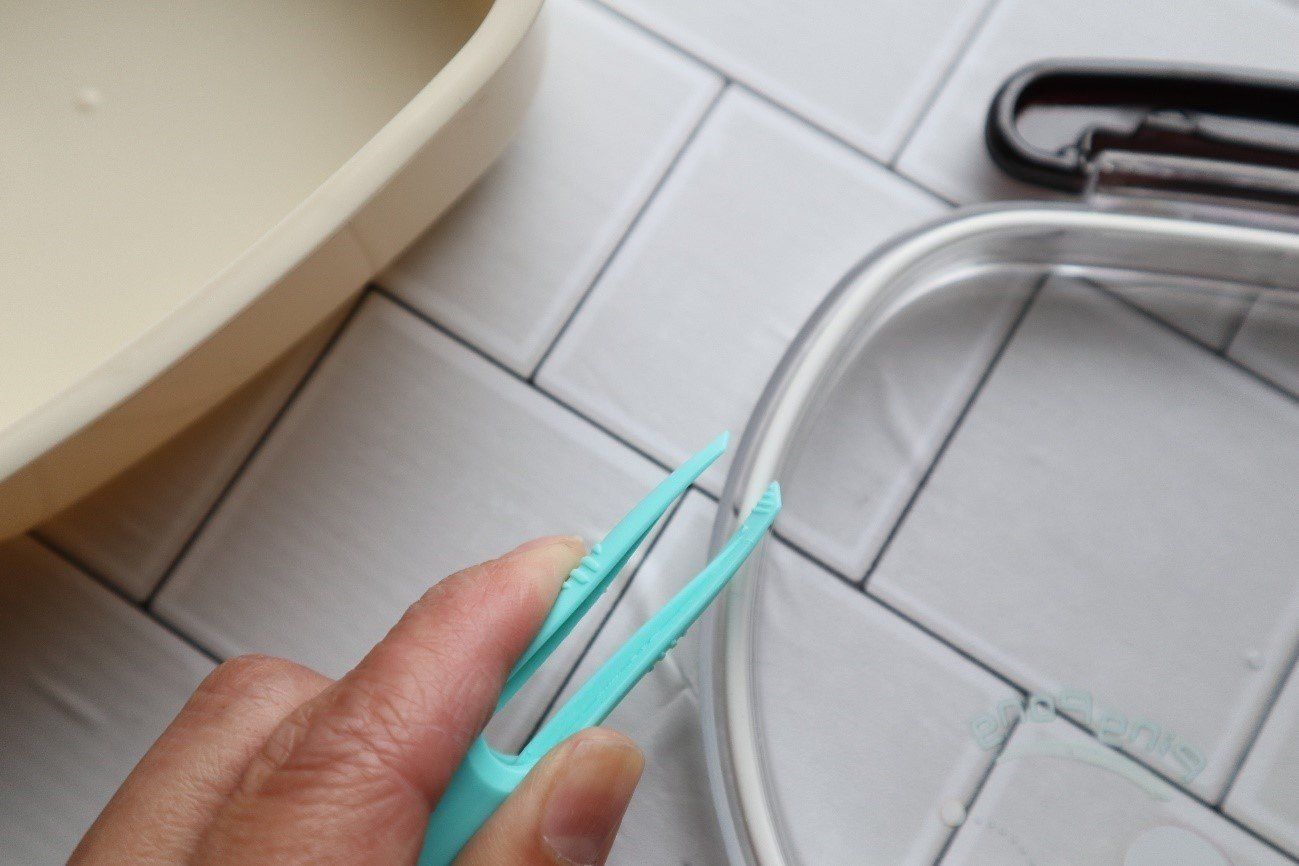 お弁当のパッキンを外すのって、洗剤で滑ってしまったり、指だとつまんで取りにくかったりとやっかいですが、ピンセットだと楽々はずせて、イライラから解放されます!