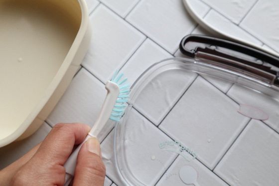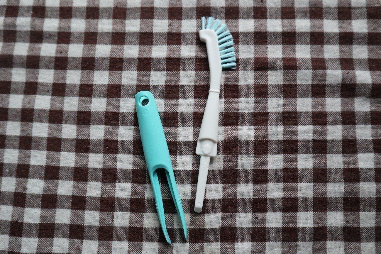 お弁当箱の溝や隙間も、幅の狭いブラシでしっかり掃除ができて清潔をキープできます。