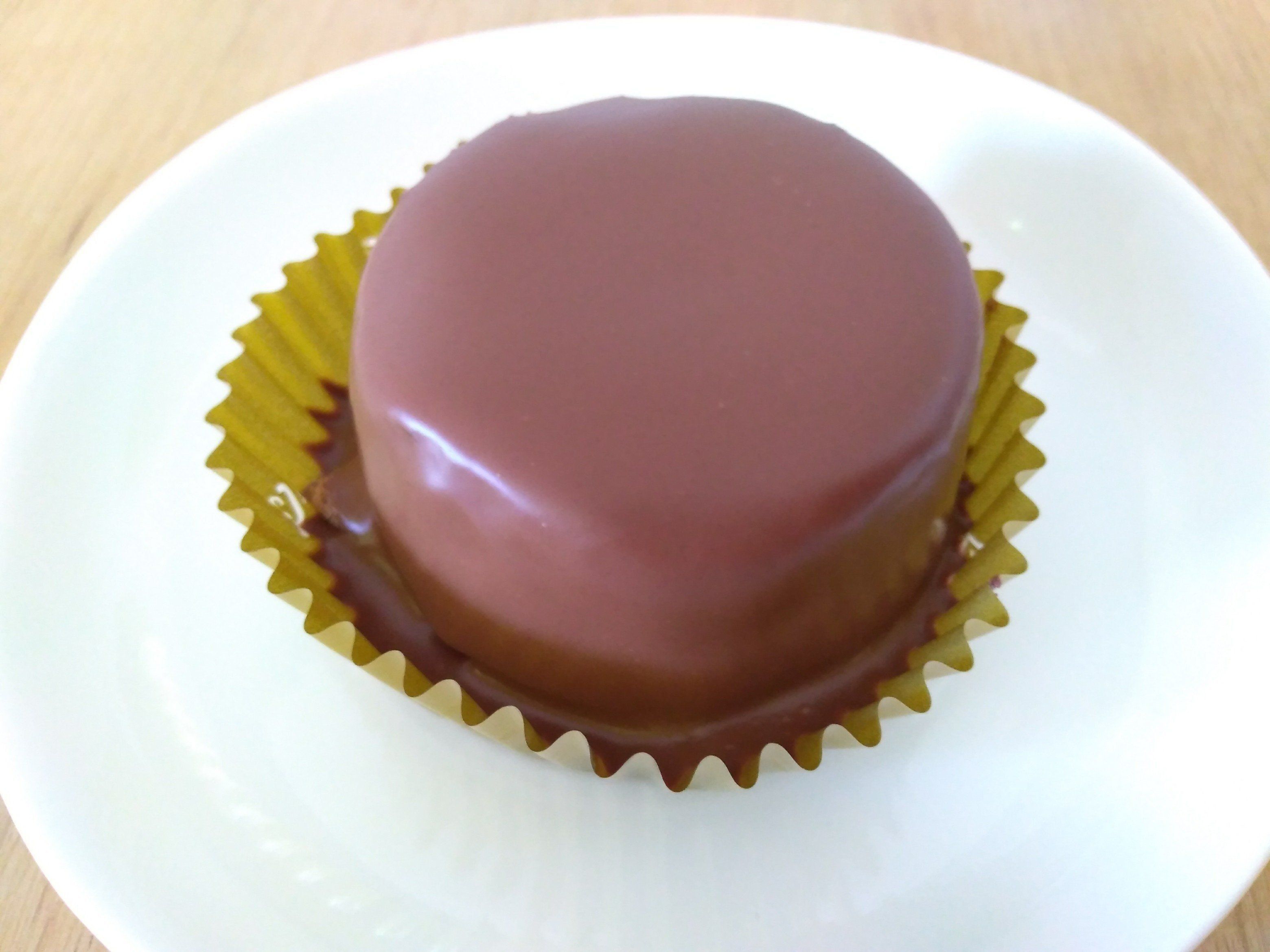 ゴールドのカップに包まれていて、高級感も漂っているし、つやつや&なめらかで濃厚そうなチョコレートコーティングに期待感が高まります!