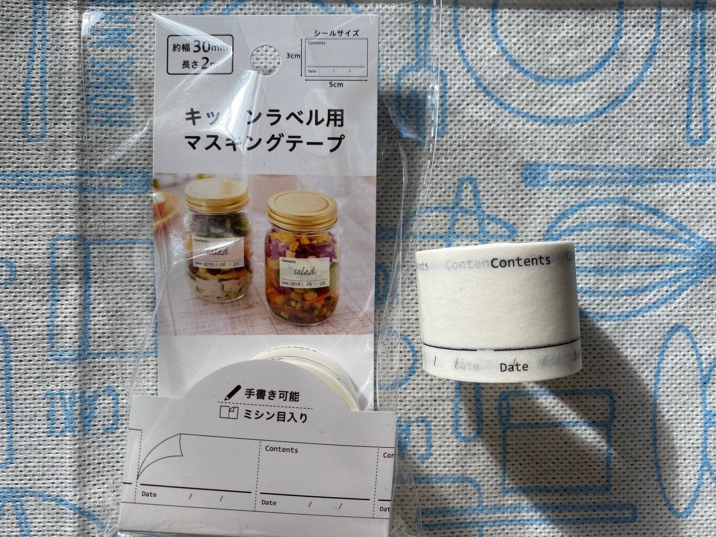使い方はいろいろ!たとえば、先に紹介した「冷凍保存用 フリーザーバッグ幾何学柄」と組み合わせてみるのはいかがでしょう。キッチンでつくり置きした食材をフリーザーバッグに入れたら、袋にテープをペタ。献立名を書いておいたり、調理日を記入しておくと、便利ですね。