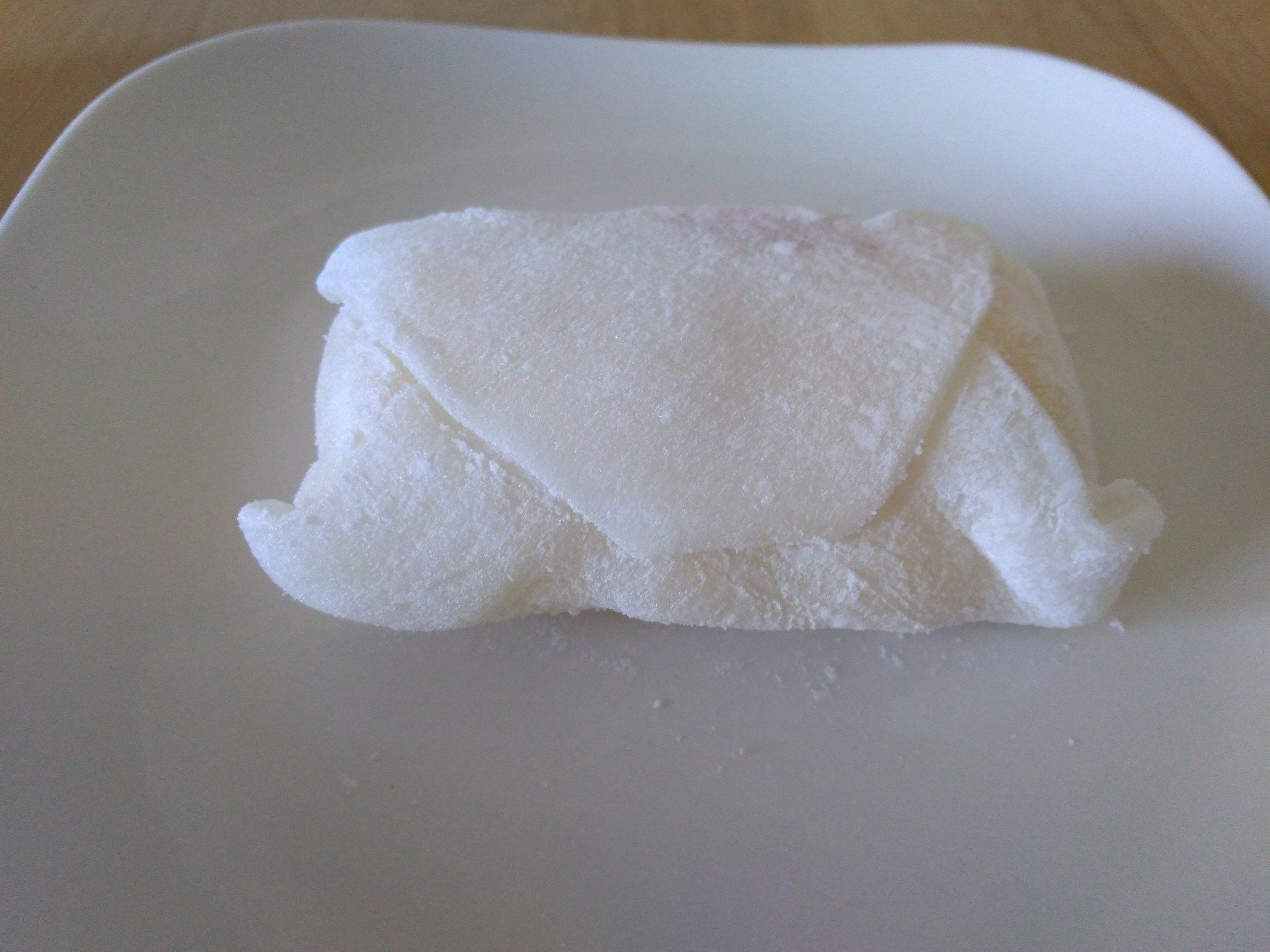 そのため、しっかりとした紙のケースの中にガードされていました。求肥から苺ソースが透けて見えて、ほんのりピンク色なところもかわいいです♪