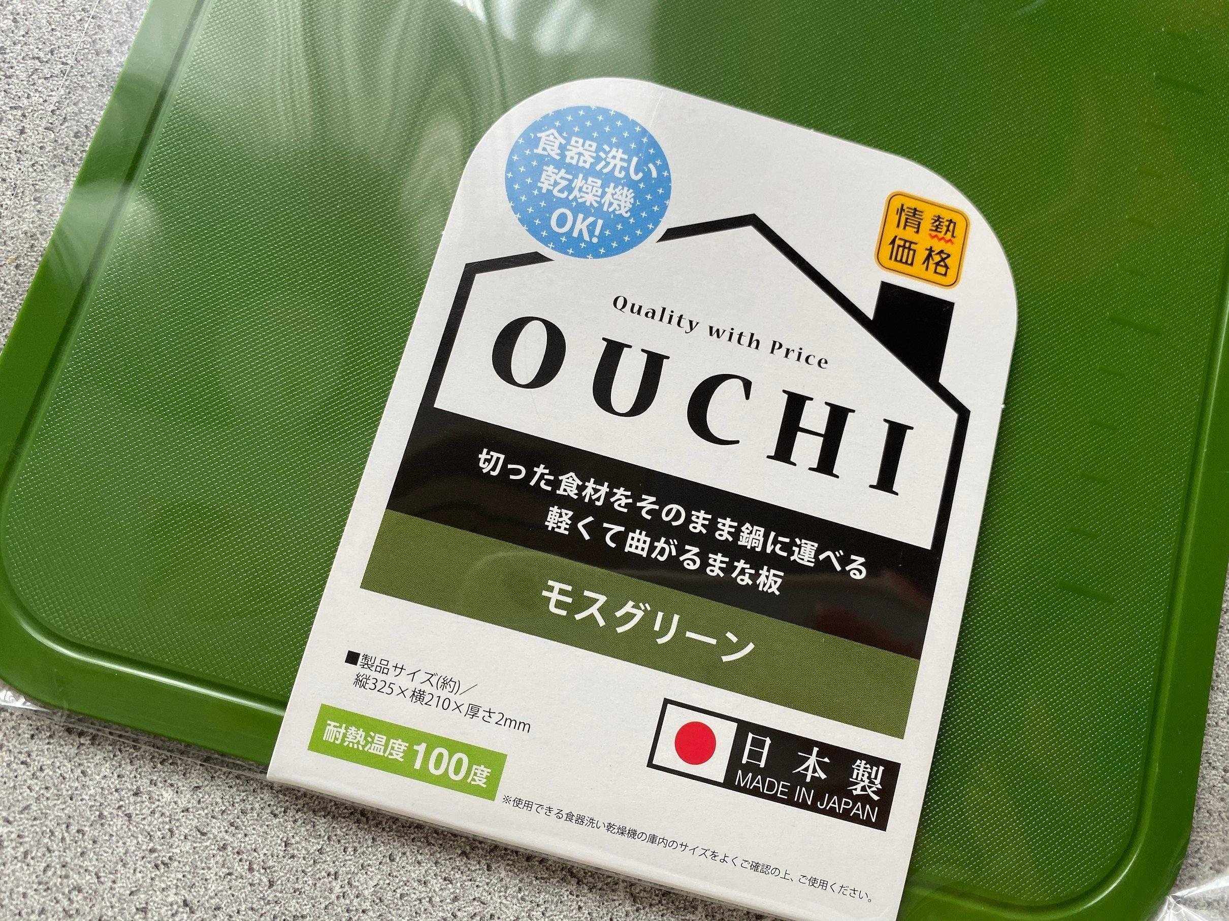 最後はまな板のご紹介です。「切った食材をそのまま鍋に運べる軽くて曲がるまな板」は、298円。今回は、モスグリーンというまな板では珍しいカラー(ほかのカラーもあり)をチョイスしました。
