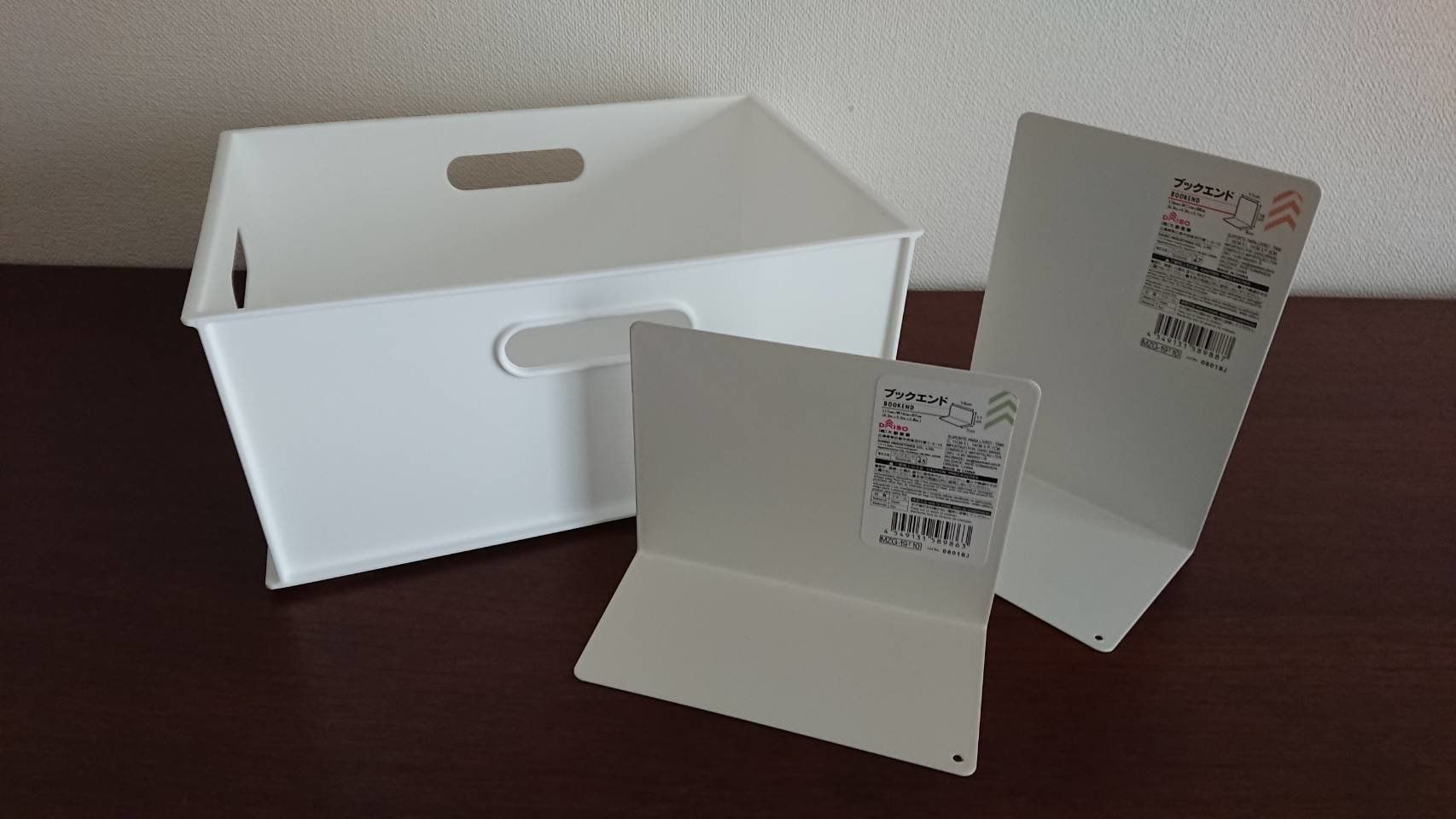 ダイソーのブックエンドは、複数のサイズが展開されています。カラーはホワイトなので、スッキリ&シンプルに、さまざまな収納ボックスに取り入れやすいのもうれしいポイント。今回はコレを使って、収納ボックス内に「仕切り」をつくってみます。