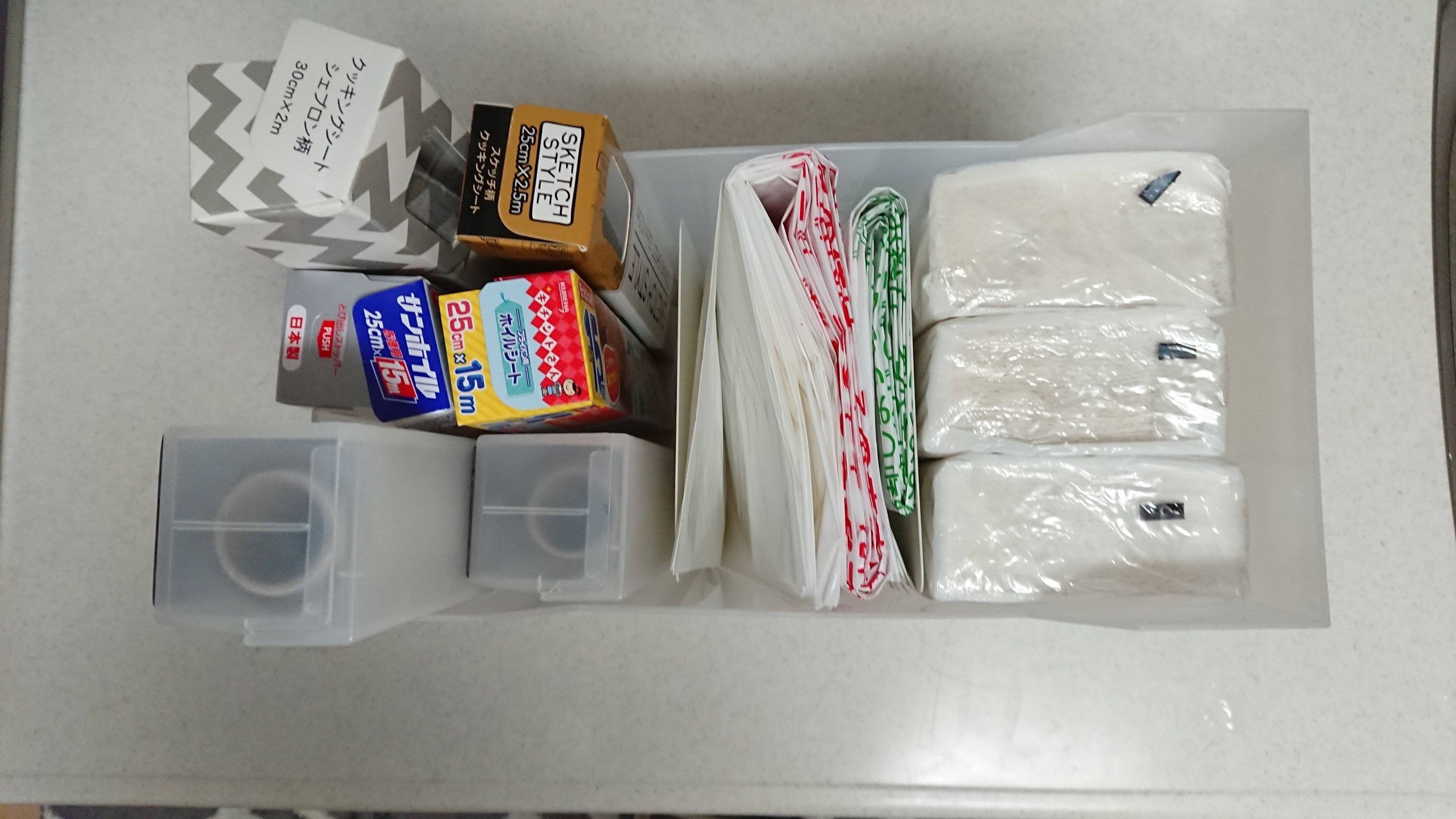 ラップやジッパーつきポリ袋など、高さのあるものを収納する際にも、ダイソーのブックエンドが大活躍。スマート&美しい収納に仕上がります。