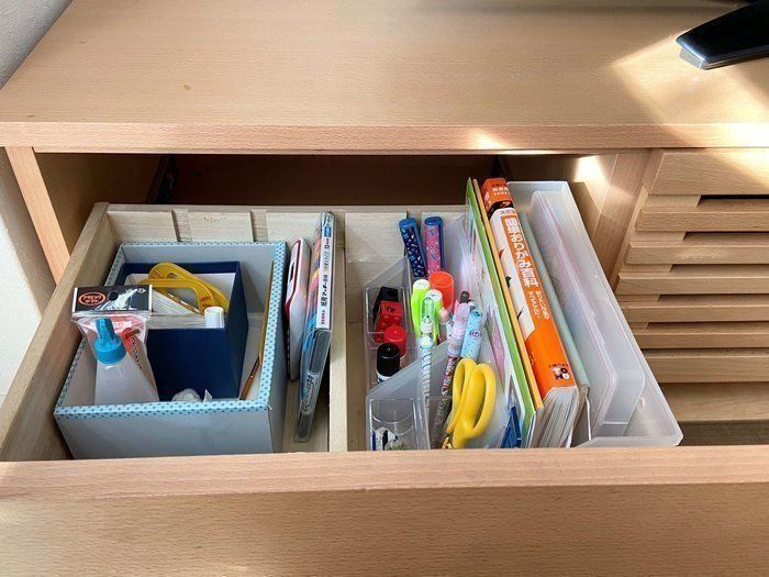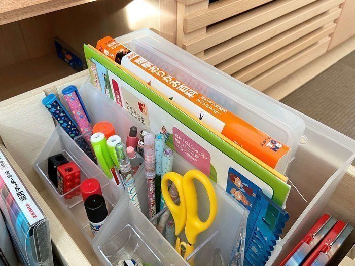 こちら仕切りも多くて子どもたちも使いやすいようでお気に入りの収納品です。