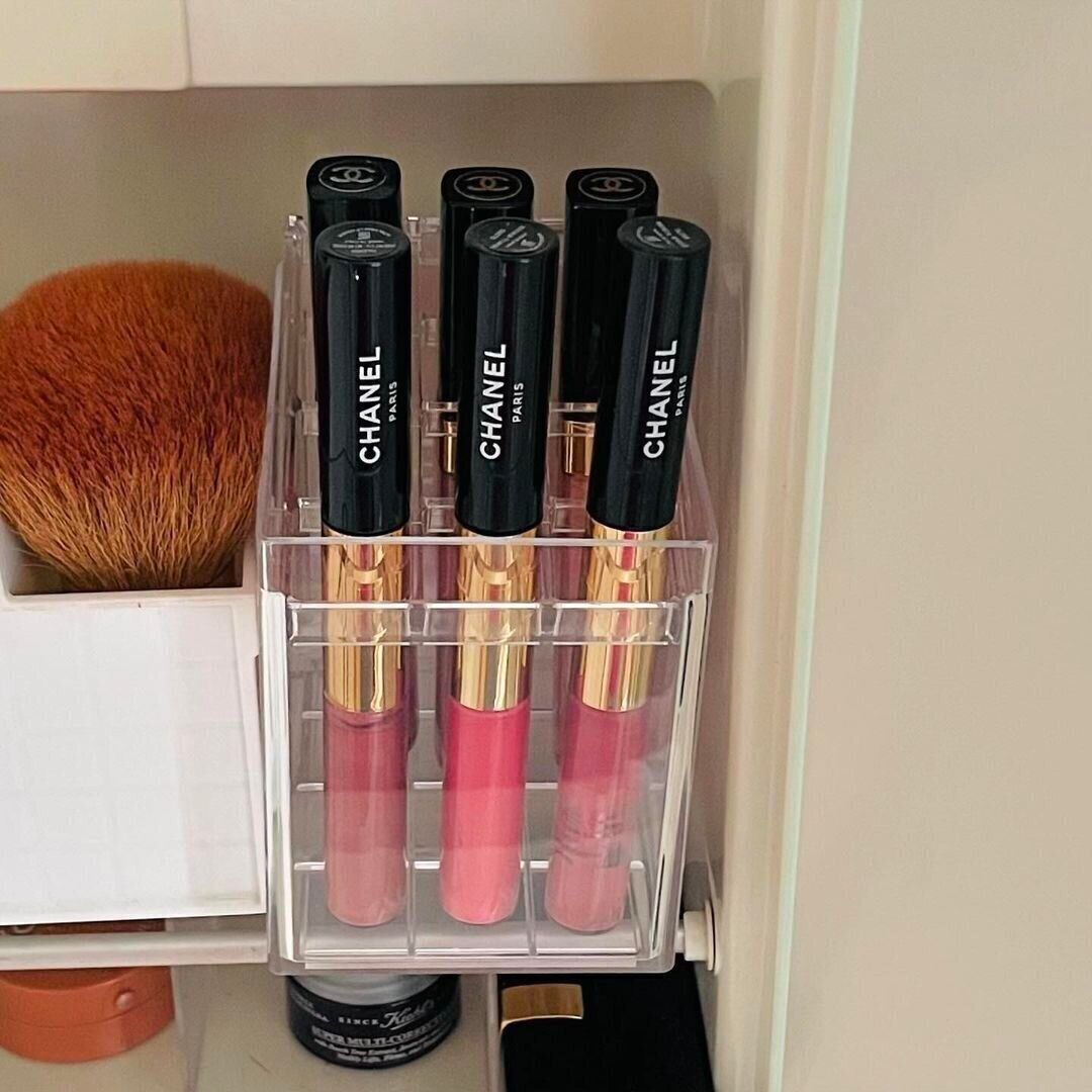 仕切り付きペンスタンドは、底にも仕切りがついているタイプのペンスタンドなので、ペンがずれにくく、きれいに収納できるアイテムです。このアイテムを使って、メイク道具をすっきり収納するアイデアをご紹介します。