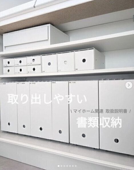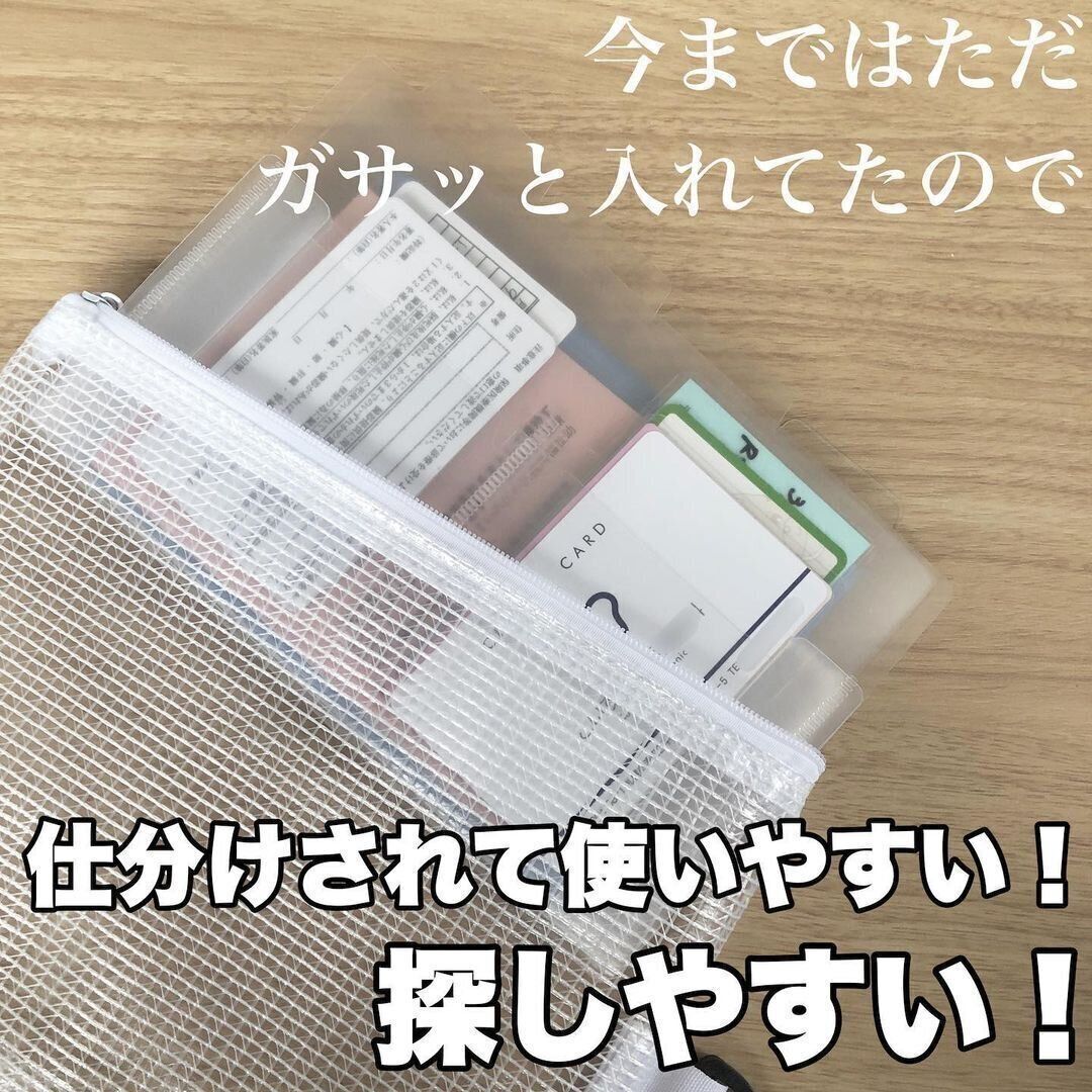 散らばりがちな小物の収納には、A4のファイルケースがぴったり。種類ごとに分類して、持ち手の部分にラベルをつけておくと取り出すのが楽ちんです。持ち手があるのでそのまま持ち運べて便利です。