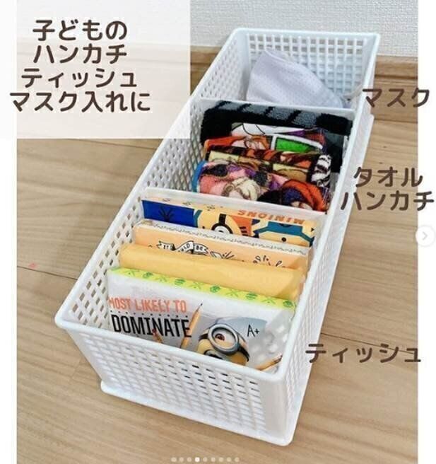 インスタグラマーさんの中でもリピ買いする人が続出の「ハンカチスタンド」。横置き、縦置きがOKで、また壁にかけてスカーフや、ネクタイをかけることもできます。引き出しの中でバラバラになりがちなハンカチもすっきり整理できるうえ、小さな子どもたちにも取り出しやすいと大人気の商品です!