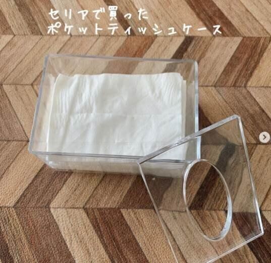 町でもらったものや、子どもが最後まで使ってくれなかったポケットティッシュなどを100%活用できるのが、こちらの「ポケットティッシュケース」です。ダイニングやリビングテーブルにちょっと置いておけばとっても便利。大きなティッシュの箱を置いておくよりも、シンプルデザインなので邪魔にもならない!これはいいですね。