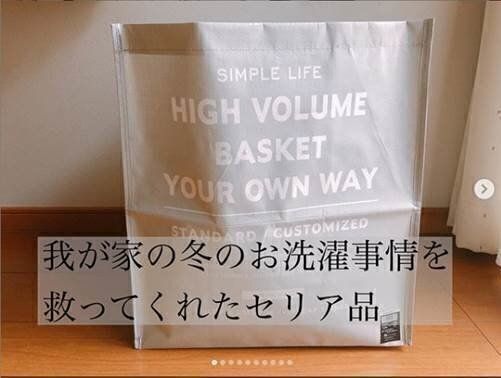 こちらのインスタグラマーさん、冬場は洗濯ものが増え、洗濯かごを買いたすか悩んでいたそうです。そんなときに見つけたのが、こちらのセリアのランドリーバスケット。110円という値段なのに、しっかりとした厚みがありとっても丈夫!しかも、おしゃれなデザインなので、紙袋の保管や、資源ごみ入れにしてみたりと、いろんな使い方ができるそうですよ!
